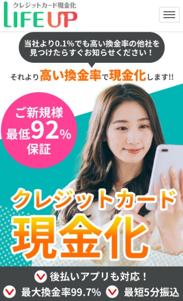 ライフアップ![]() | スピードワン![]() | 現金化本舗![]() | |